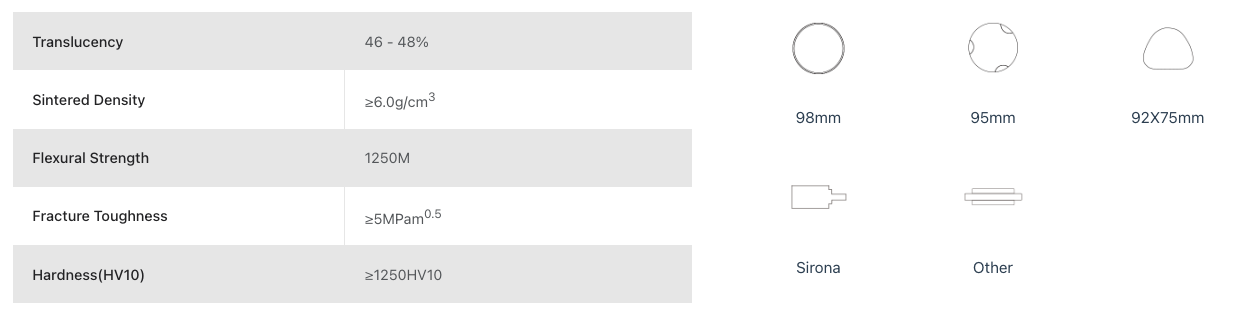 GERNIN zirconia block is a gradient zirconia material that meets the requirements of standardized production and is very cost-effective. After sintering, it directly takes on the color of dentin and doesn't need dyeing. Meanwhile, it features both high strength and high translucency, and has an outstanding aesthetic effect.